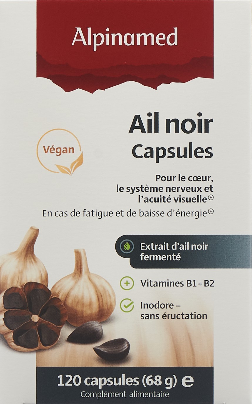 Le capsule di aglio nero Alpinamed contengono un pregiato estratto speciale di aglio nero e preziose vitamine del gruppo B che contribuiscono al mantenimento di vitali funzioni dell’organismo come la funzione cardiaca, il metabolismo del ferro, il sistema nervoso, le funzioni psichiche e il metabolismo energetico, aiutando al contempo a ridurre la stanchezza e l’affaticamento.